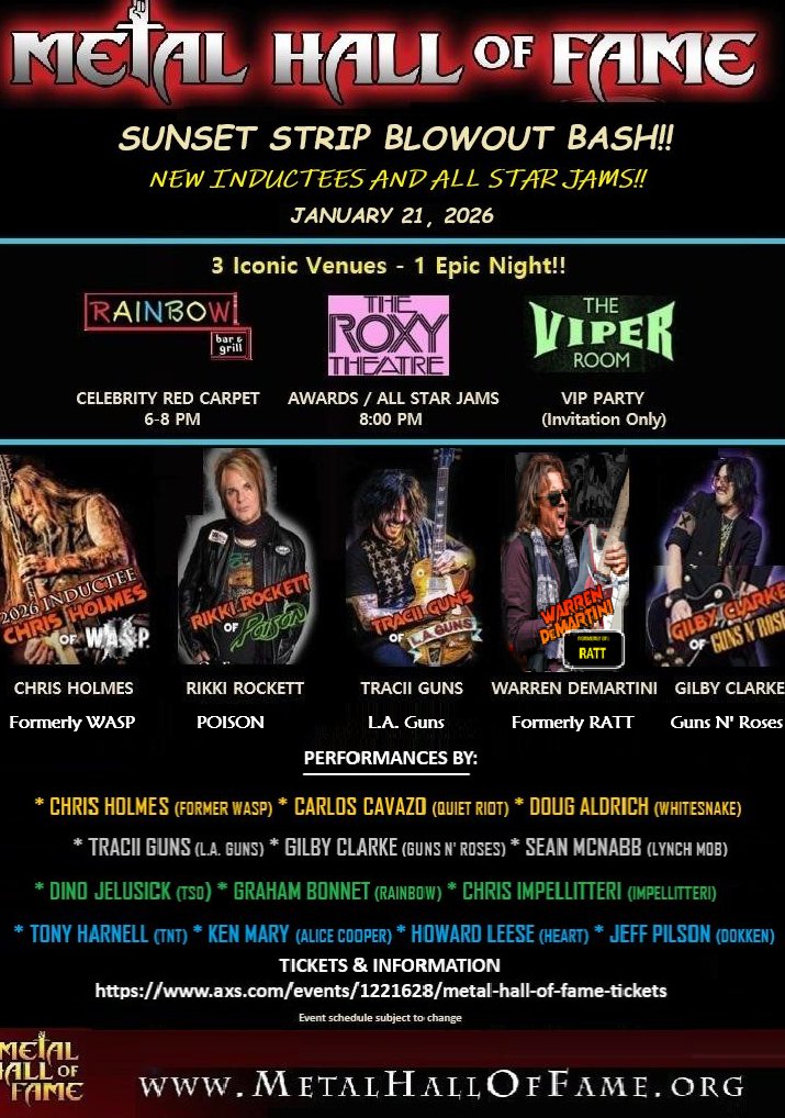 HOLLYWOOD, California — The new year is off to a fast start and the Metal Hall of Fame is coming to the Sunset Strip on January 21st 2026.
