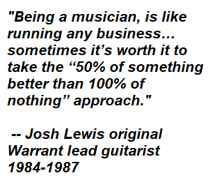 Original Warrant guitarist Josh Lewis adds: “Being a musician, is like running any business… sometimes it’s worth it to take the “50% of something is better than 100% of nothing” approach. Sometimes, like in Stevie Rachelle Tuff case, opportunities come from relationships. Taking a pay cut a few times might pay off, or it might be a waste of time, or even set a precedent you don’t want. Either way, it’s a lesson that you will benefit from.”