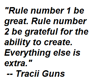 Guns ends his comment with this: “Rule number 1 be great. Rule number 2 be grateful for the ability to create. Everything else is extra.”