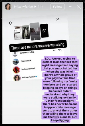Brittany’s attorney Lou Shapiro tells TMZ … “Ms. Furlan is offended to find out this petition was filed because the only victim of harassment is her. We will take all legal measures to defend against this frivolous lawsuit and request the Ms. Furlan be protected from further harassment and threats by the petitioner.”