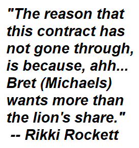 “The reason that this contract has not gone through, is because, ahh… Bret wants more than the lion’s share. He wants… the amount of money he wants, would make it where it’s pretty much impossible to run the production of the band.”