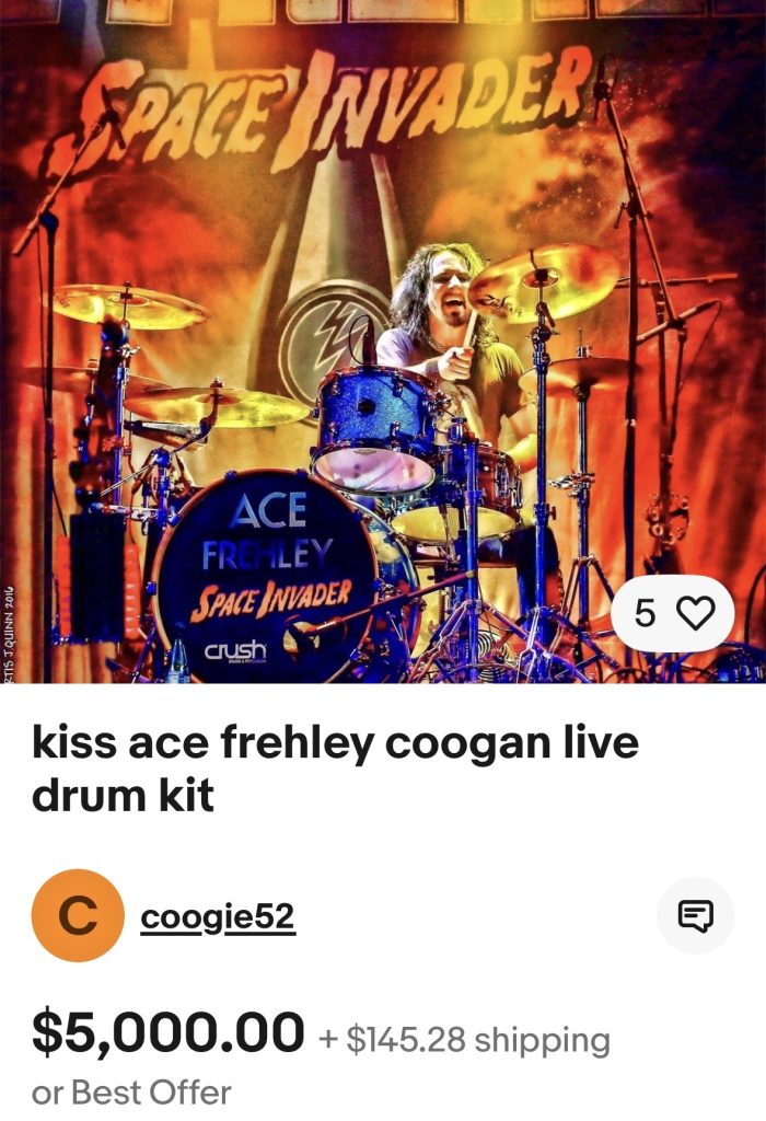 HYPOCRITE NEWS … Scot Coogan Selling his Ace Frehley Branded Tour Drum Kit for $5,000.00 on eBay, 1 Day after stating; “I have absolutely no interest in profiting from his name, likeness, or legacy.”