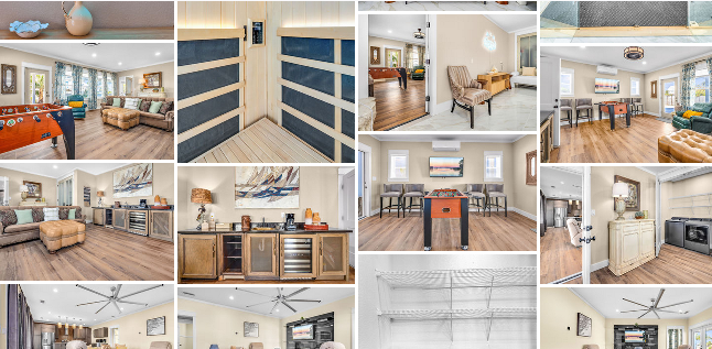 “I spent about 8 months on Magic Manor. It’s 6,000 square feet in the interior with another 3,000 if you include the covered deck, so… 9,000 in total. This is 3 stories, has 8 bedrooms, 9 bathrooms and it sleeps 34. We have 2 inside kitchens and 1 outdoor kitchen. There are also 2 wet-bars, a sauna, hot tub, a gym and a swimming pool.