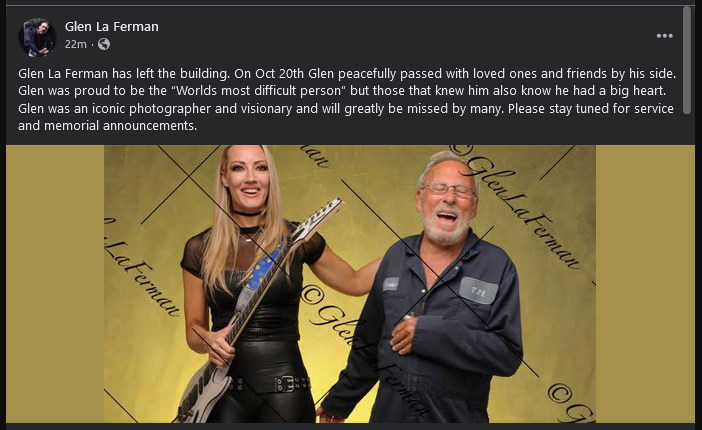 There is a statement on La Ferman‘s official Facebook page that reads as follows: “Glen La Ferman has left the building. On Oct 20th Glen peacefully passed with loved ones and friends by his side.